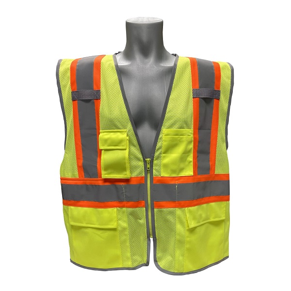 Reflective trim around the vest edges helps increase the contrast with whatever is being worn by the worker.